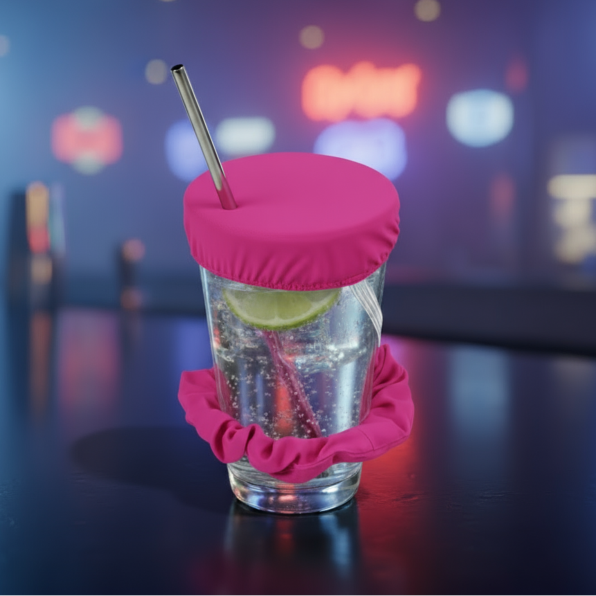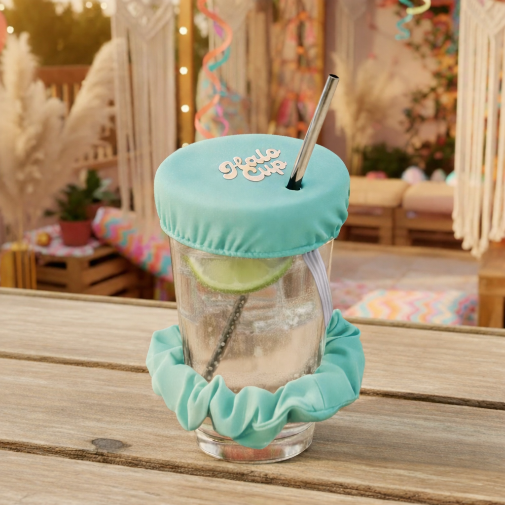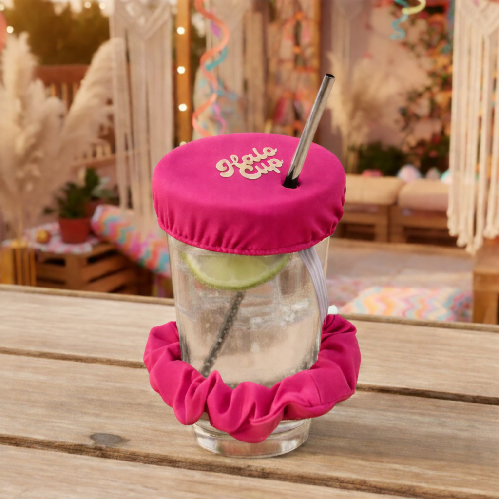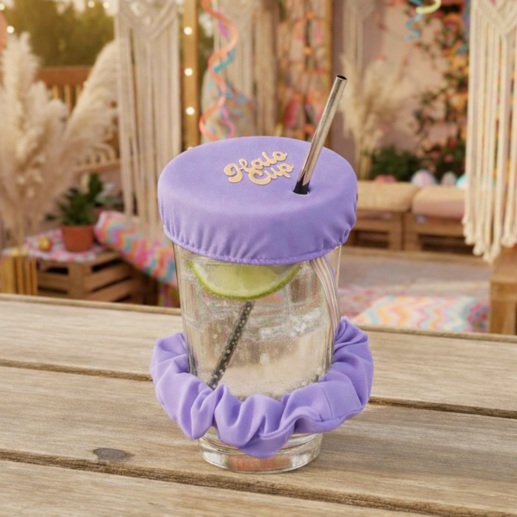 HaloCup est un chouchou coloré et réutilisable qui se transforme en protection anti-drogue pour ton verre. Il te permet de profiter de la fête en toute sécurité, avec style et légèreté.