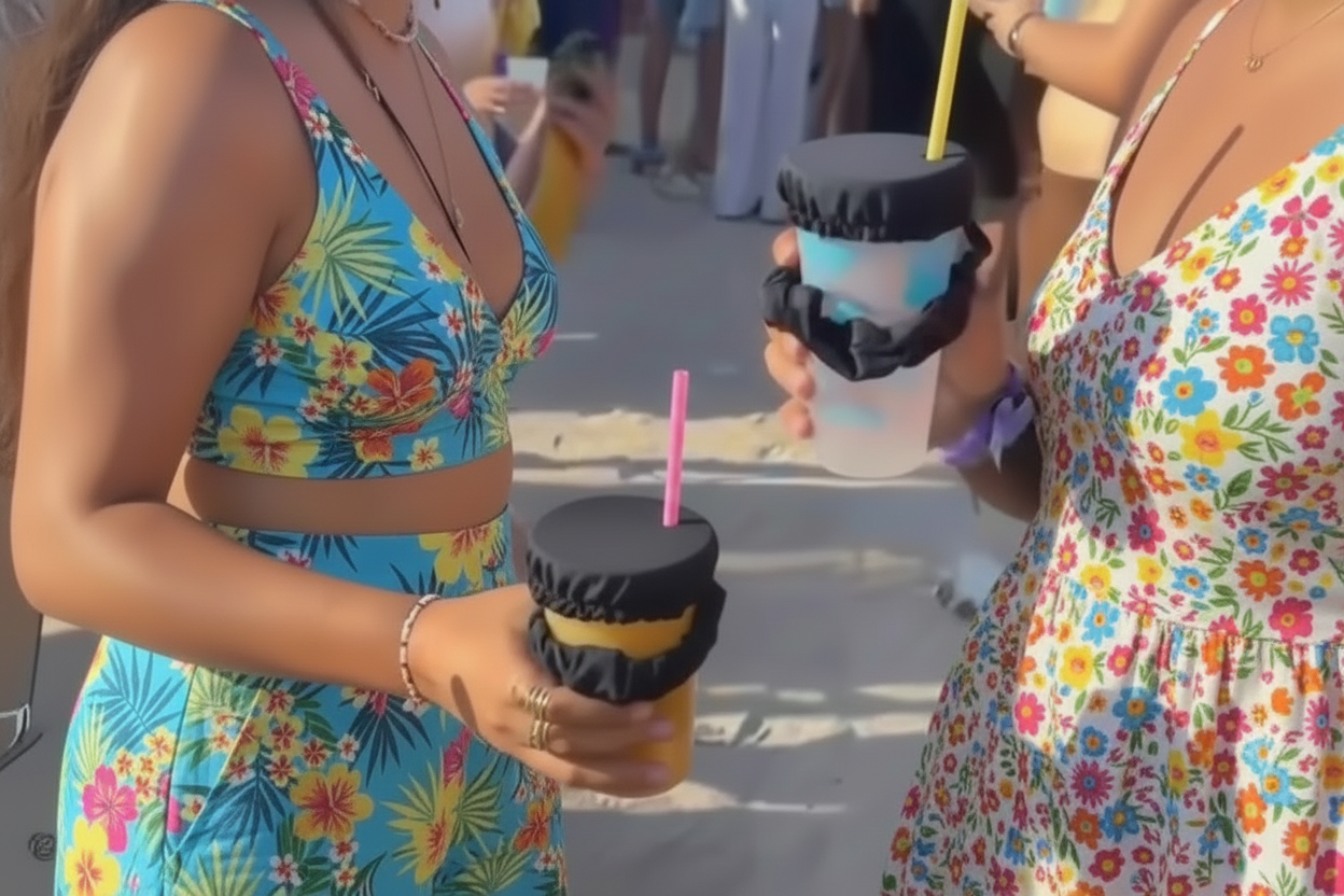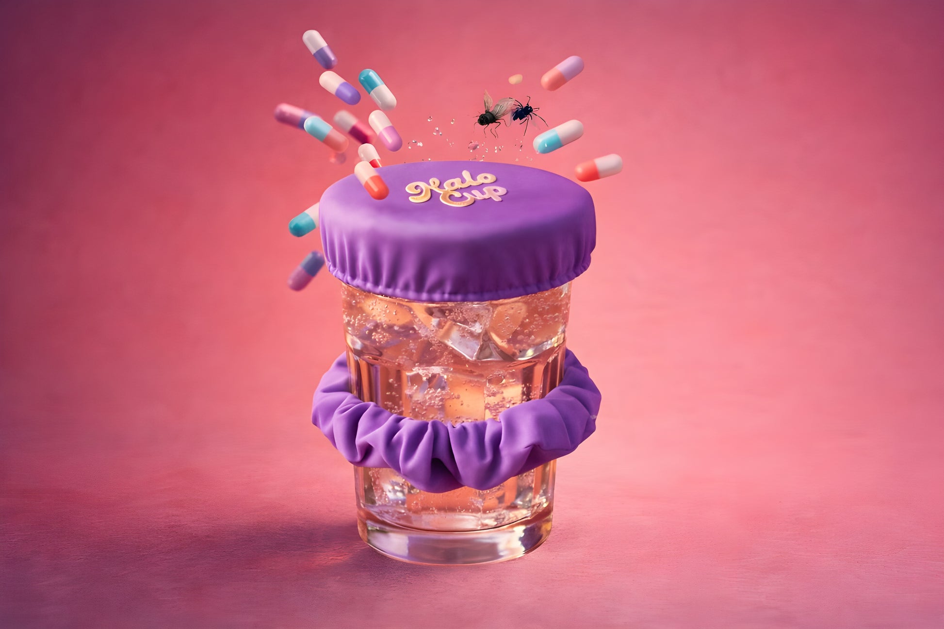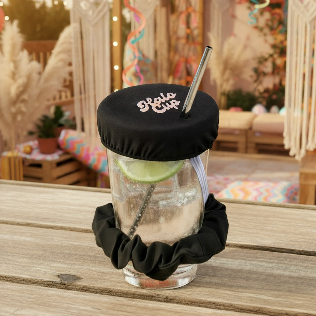 HaloCup est un chouchou coloré et réutilisable qui se transforme en protection anti-drogue pour ton verre. Il te permet de profiter de la fête en toute sécurité, avec style et légèreté.
